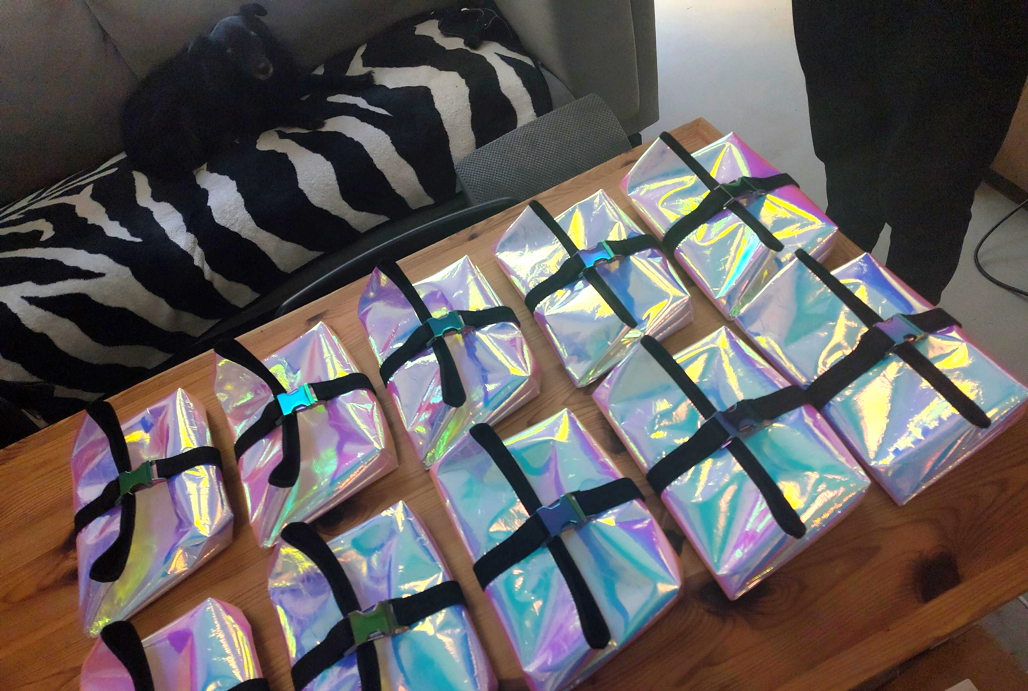 Greta recently sewed multiple holographic sleeves for MNT Pocket Reform, so some of the orders that included these sleeves can now be shipped.